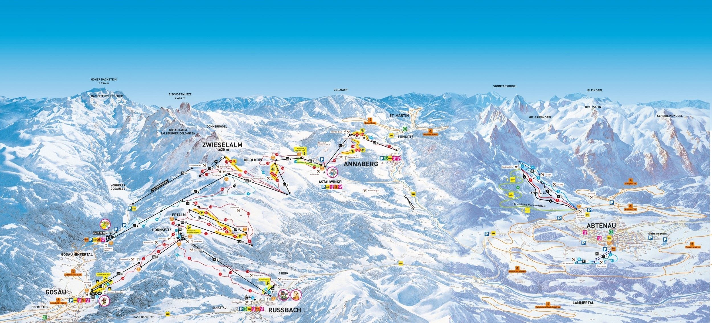 Ieškote informacijos apie šiuo metu esančias sniego sąlygas? Čia rasite aktualią orų prognozę kitoms dienoms Abtenau. Paprastai galima susidaryti nuomonę įsijungus vaizdo kamerą. Taip pat rasite informaciją apie atidarytus keltuvus slidinėjimo zonoje Abtenau ir aktualų sniego gylį kalnuose bei slėnyje. Diagrama suteikia progą palyginti šių metų sniego sąlygas su praėjusių metų ir susidaryti nuomonę apie visą sezoną Abtenau.