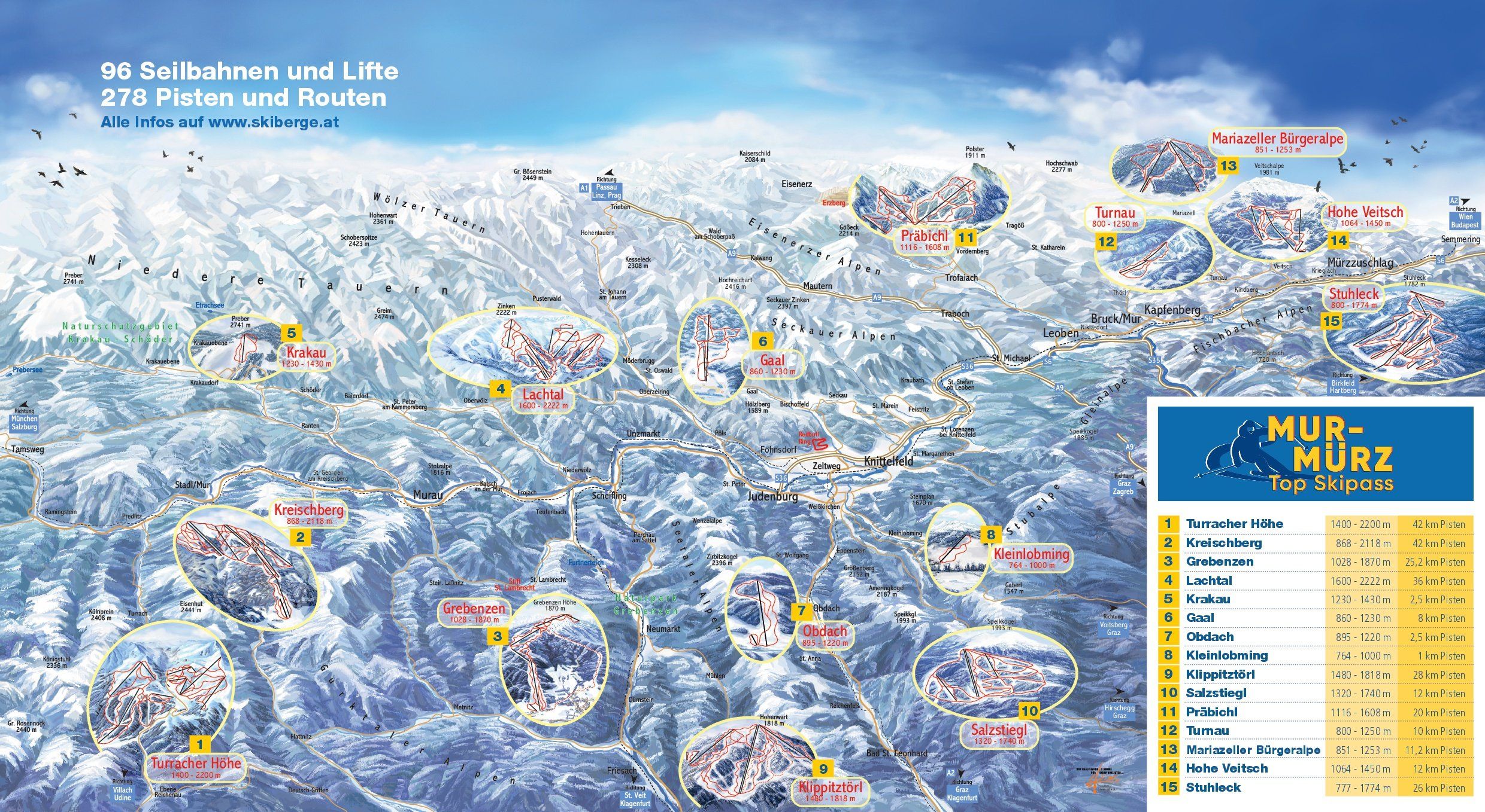 Tuo tarpu Grebenzen (12,2 km trasų) prie St. Lambrecht ir Klippitztörl (28 km trasų) laukia labiau atpalaiduojančios slidinėjimo dienos, toli nuo didelio žiemos šurmulio. Tradicijų turtingoje Präbichl slidinėjimo zonoje slidinėjimo mėgėjai gali pasigrožėti ne tik įspūdinga Karintijos kalnų panorama, bet ir įvairiais nusileidimo takais. O tiems, kurie mėgsta dar jaukesnę atmosferą, mažesnėse slidinėjimo vietovėse, tokiose kaip Bürgeralpe Mariazell, Brunnalm – Hohen Veitsch, Schwabenbergarena Turnau, Salzstiegl arba Krakau (Tockneralm), su Mur-Mürz Top Skipass bilietu galima mėgautis šeimynine atmosfera ir aiškiai matomomis trasomis, kurios idealiai tinka pradedantiesiems ir vaikams. Ypač žavingos yra regiono slidinėjimo regiono dalis – Obdach, Kleinlobming ir Gaal slidinėjimo kalvos. Jos išsiskiria gerai prižiūrimais šlaitais, sąžiningomis kainomis ir ramybe, todėl puikiai tinka pirmiesiems posūkiams sniege ar atsipalaidavimui su šeima.